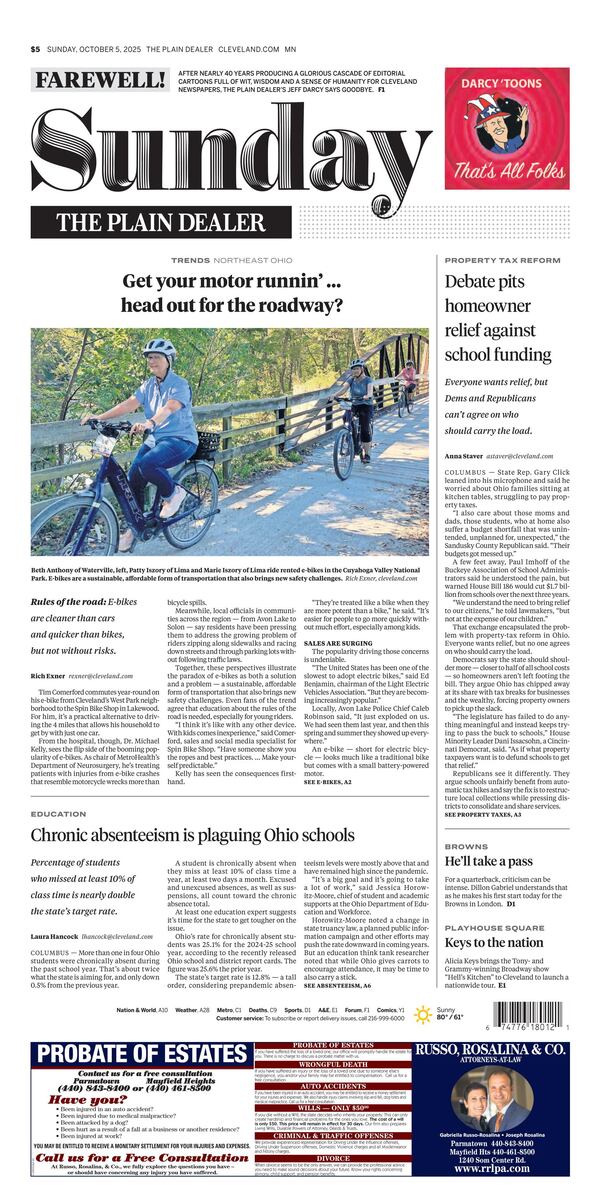 The latest front page of The Plain Dealer for October 5, 2025, features a diverse range of stories that reflect the ongoing developments within the Cleveland community. The newspaper continues to serve as a vital source of information for its readership, highlighting local news, events, and issues that resonate with residents.