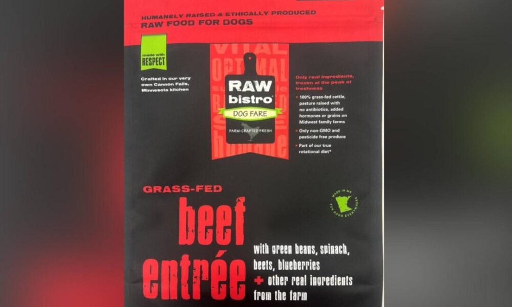 Raw Bistro Pet Fare, a pet food company based in Minnesota, is recalling specific lots of its frozen beef dog food products due to a potential...