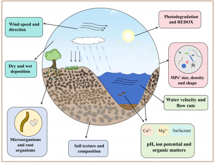 Microplastics, defined as plastic particles with diameters less than 5 mm, are classified based on their chemical composition, particle size, and origin. These pollutants pose significant risks to ecosystems and human health through processes such as bioaccumulation and composite pollution. Despite the growing awareness of their environmental impact, the mechanisms that drive their movement and fate across different media remain largely unresolved.